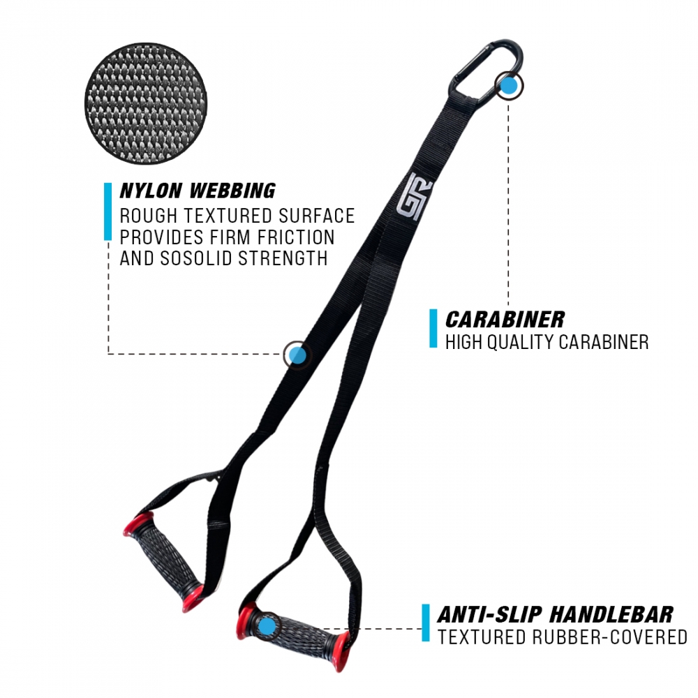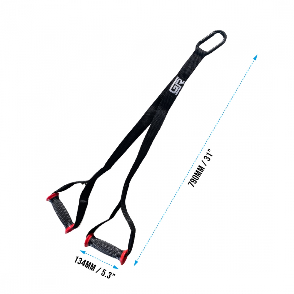 This is a premium V-strap harness. Crafted from durable nylon webbing, this harness provides strength and support to tackle the most intense sled pulling exercises. The extended 31-inch (790mm) length offers a wider range of motion, while the dual anti-slip handles ensure a secure and comfortable grip during explosive movements. For seamless integration with your existing sled, a heavy-duty carabiner is included, allowing you to easily attach the harness as an extension to the V-strap on the sled frame.