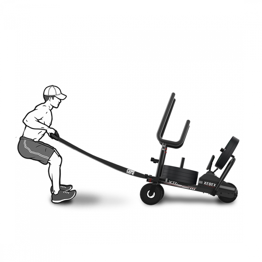 Heavy-duty V-strap harness, made with durable nylon webbing for durability and intense sled pulling. 31″ (790mm) length provides wider range of motion. Dual anti-slip handles ensure secure grips. Includes carabiner for easy attachment to the extension V-strap from the sled frame.