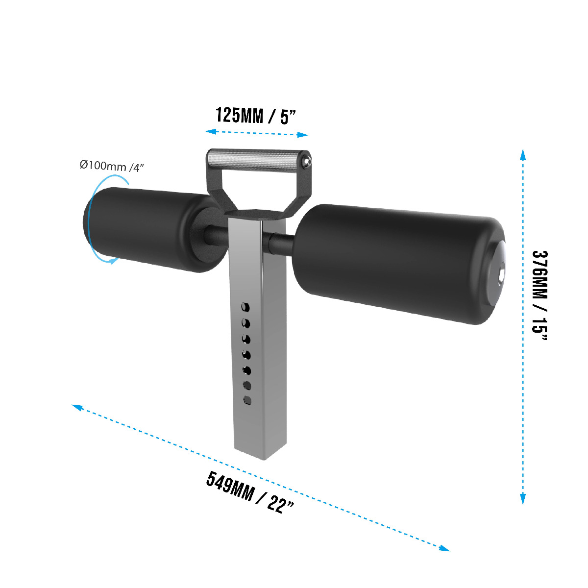 – Support: Two 100mm (4″) diameter nylon-covered rollers for leg stability with 125mm (5”) knurled grip handle. Pairs with the RX3 Optimus Pad.