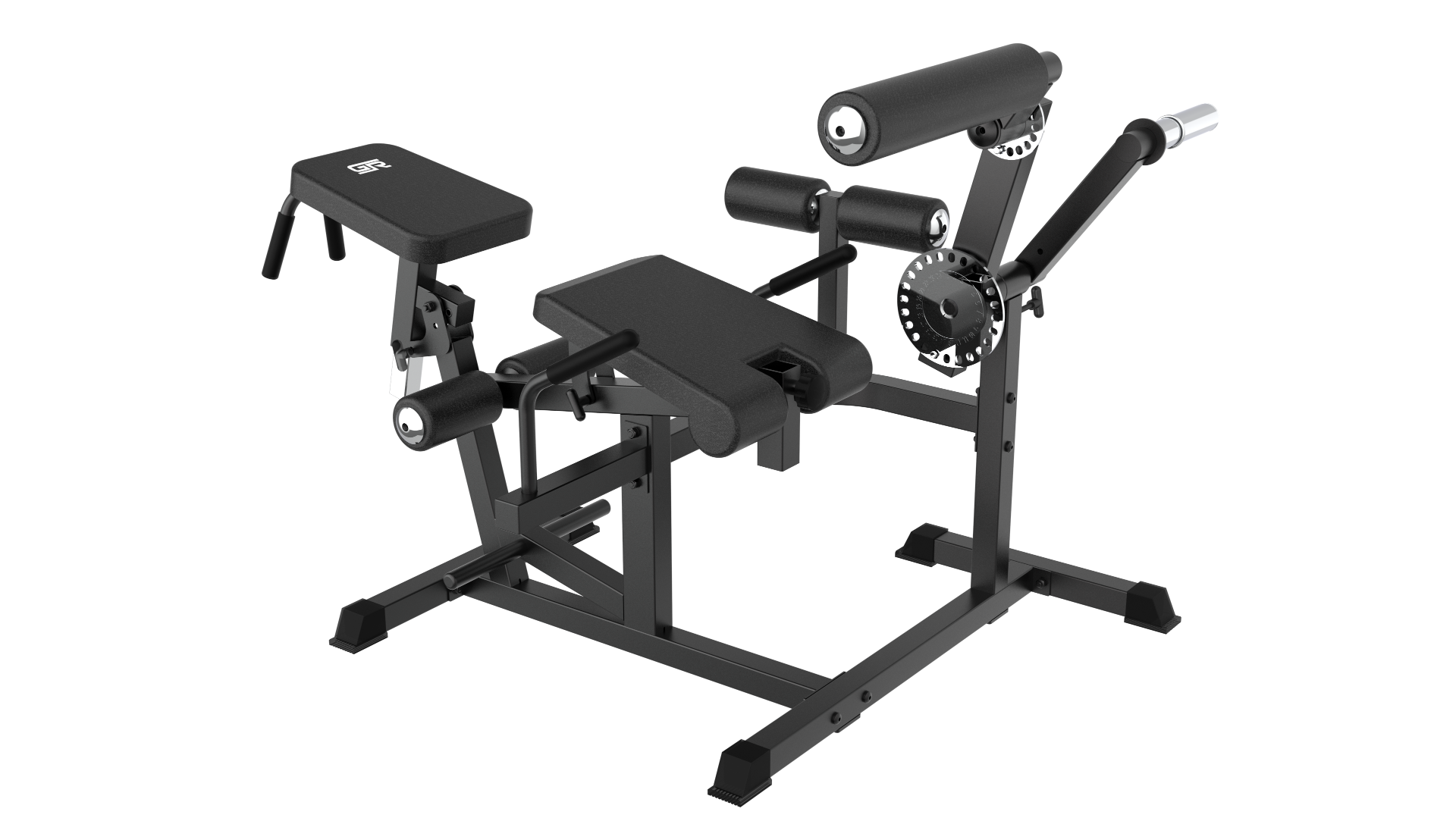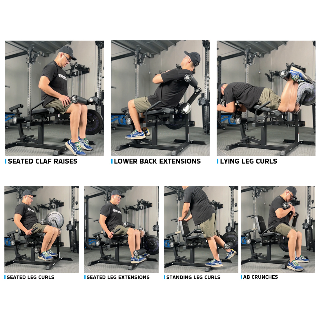 Unlock 7 lower body and core exercises with this one compact machine. Perform seated leg curls, lying leg curls,